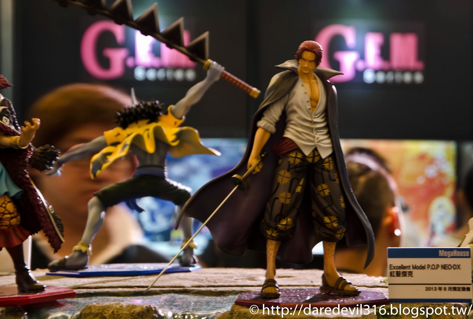 去年漫博的時候在信義區A9館裡有兩場模型展,一是 HOT TOY 的英雄模型展,老實講門票不便宜,所以我當時並沒有進去參觀。反倒是 MEGAHOUSE 免費入場比較下更有吸引力。這回滿滿的海賊王讓我想起以前一位同事曾在公司的桌上擺滿了POP的海賊王....這尺寸全放上桌真的蠻壯觀的。